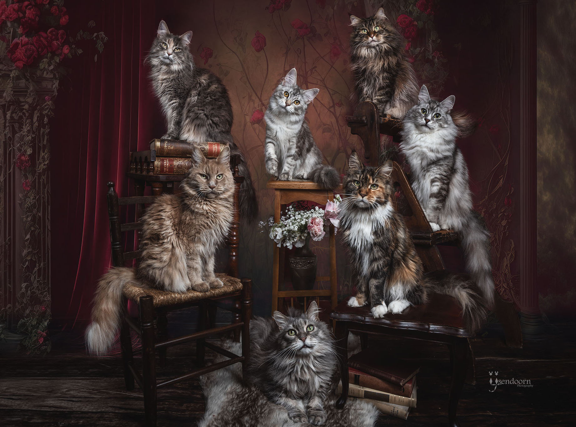 Inmiddels jaren later hebben wij zelf zes prachtige en lieve Maine Coons: Joy, haar kleindochter Noa, Fay, haar dochter Fenna, haar kleindochter Kaija (dochter van Fenna) & de jongste heet Saartje.